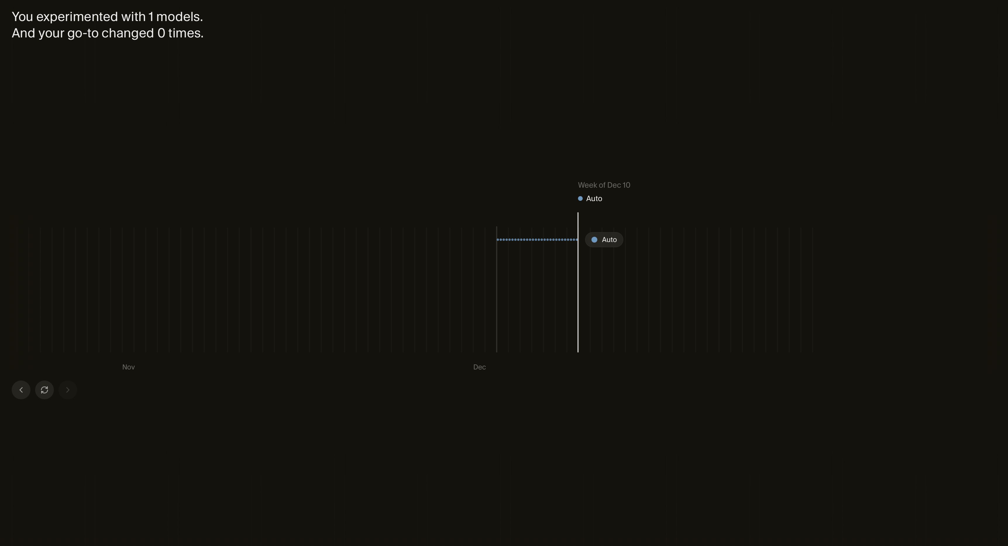 “You experimented with 1 models. And your go to changed 0 times”