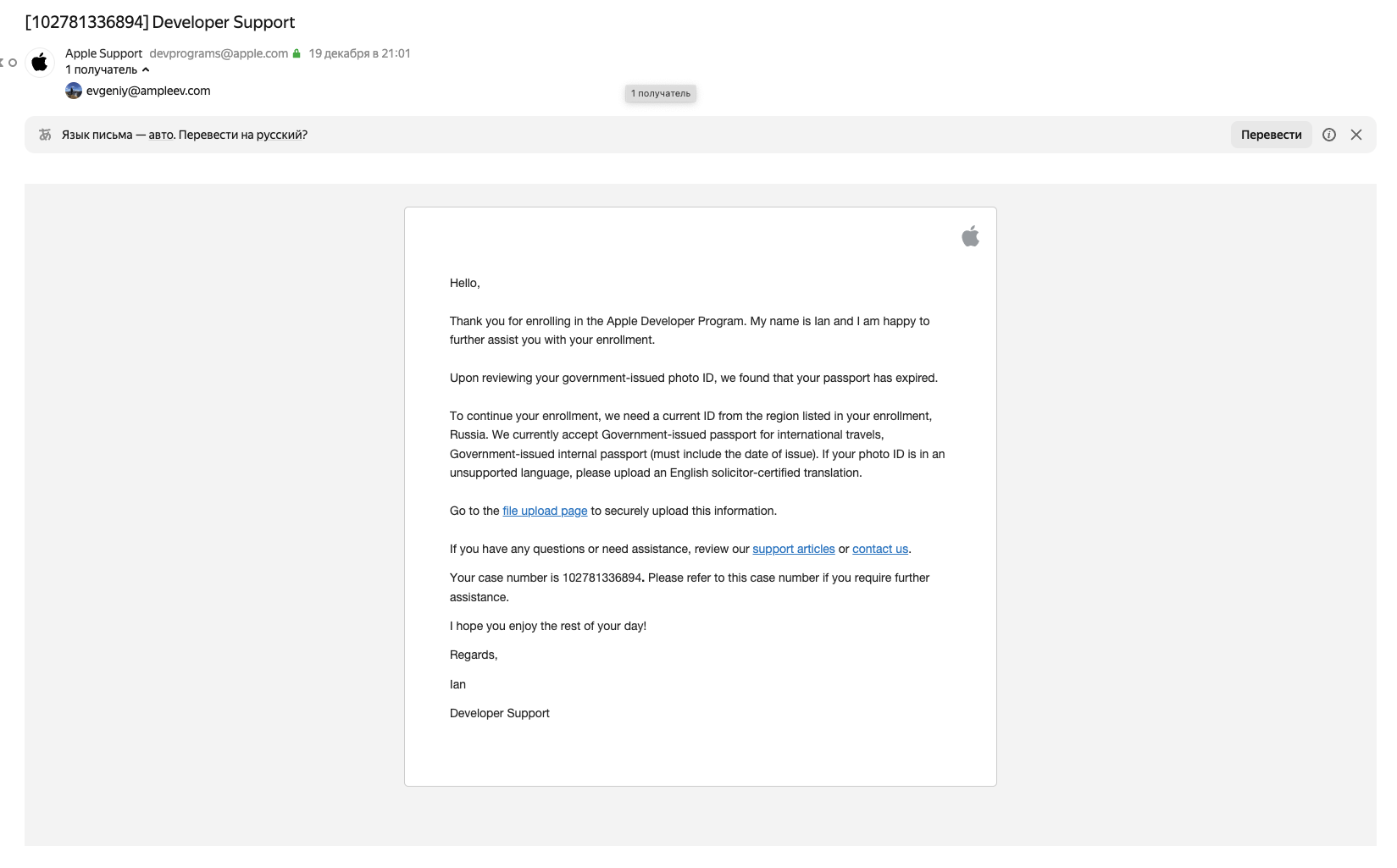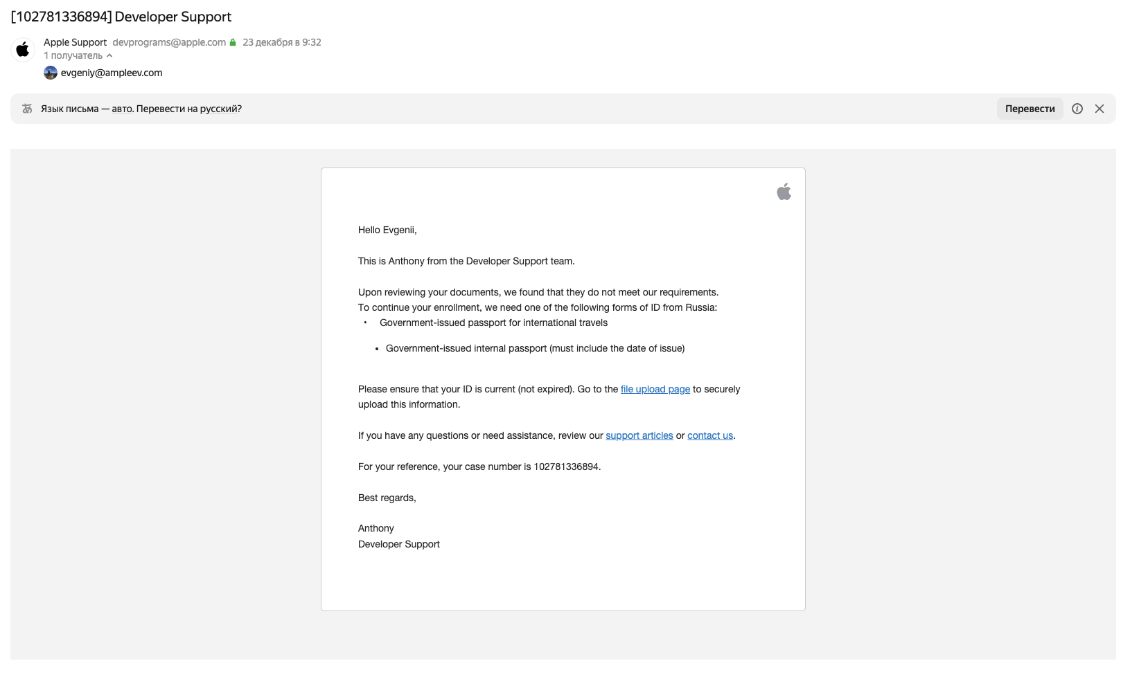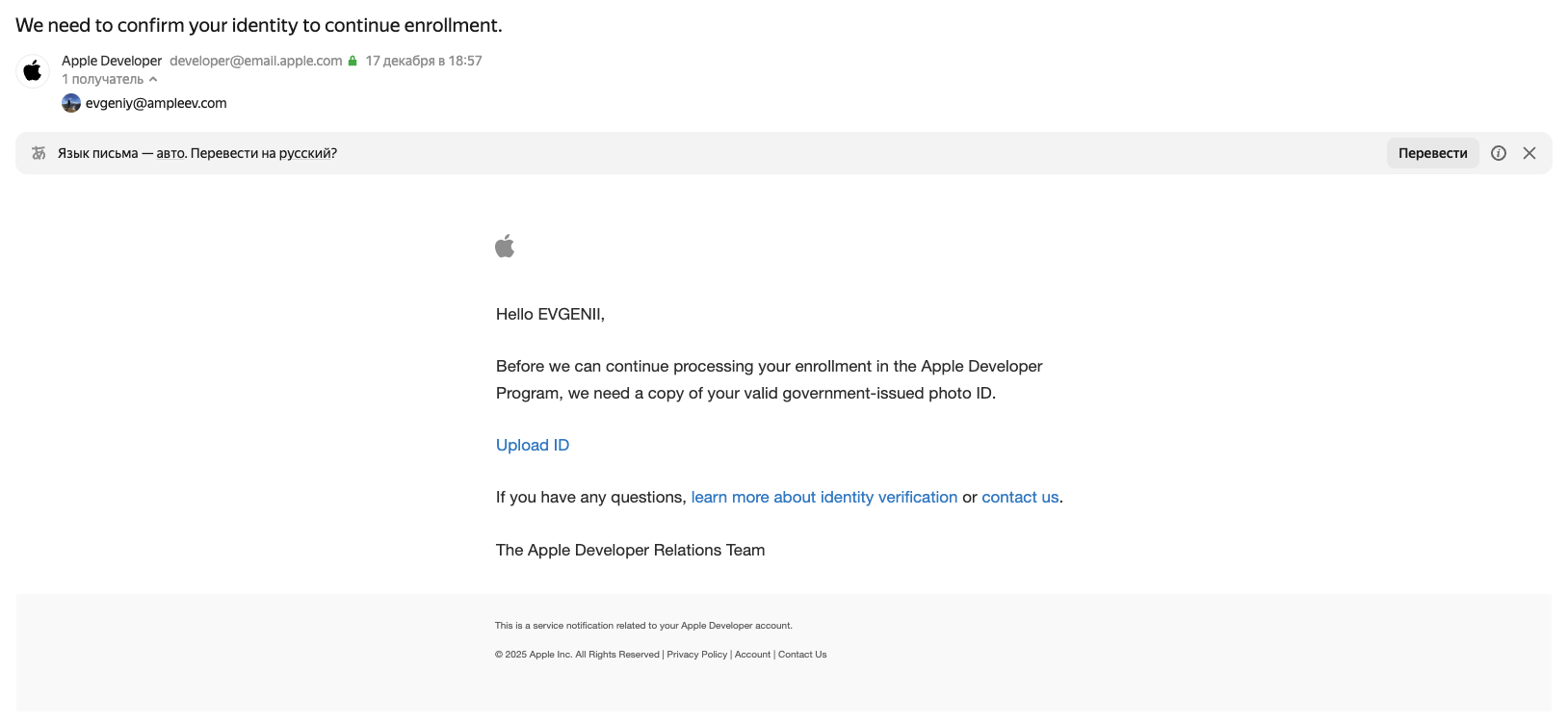 Apple заключает с тобой контракт, поэтому верификация личности — обязательный и строгий этап.